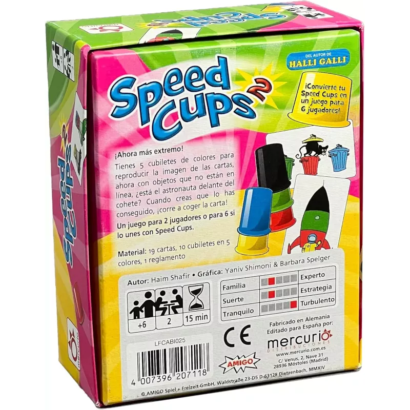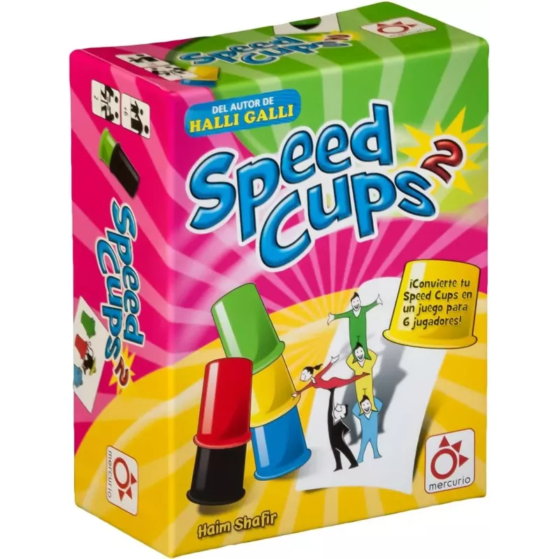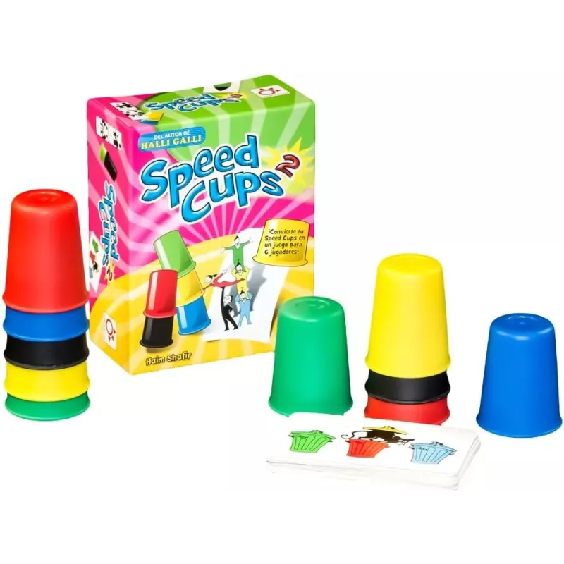 Descubre Speed Cups 2, el juego de mesa de reflejos para 2 jugadores. Incluye nuevas cartas desafiantes. Compacto y fácil de transportar. Ideal para mayores de 6 años. EAN: 4007396207118.