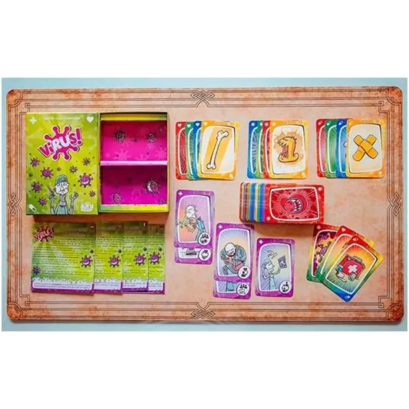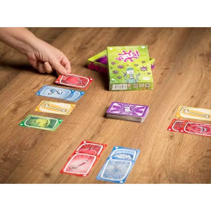 En Virus!, te sumergirás en una frenética batalla para contener una pandemia de virus que amenaza con propagarse sin control. Tu misión es ser el primero en erradicar el virus y salvar al mundo de esta peligrosa amenaza. Con reglas sencillas y partidas rápidas, este juego es perfecto para reuniones familiares, fiestas o simplemente para disfrutar de una tarde de juegos.