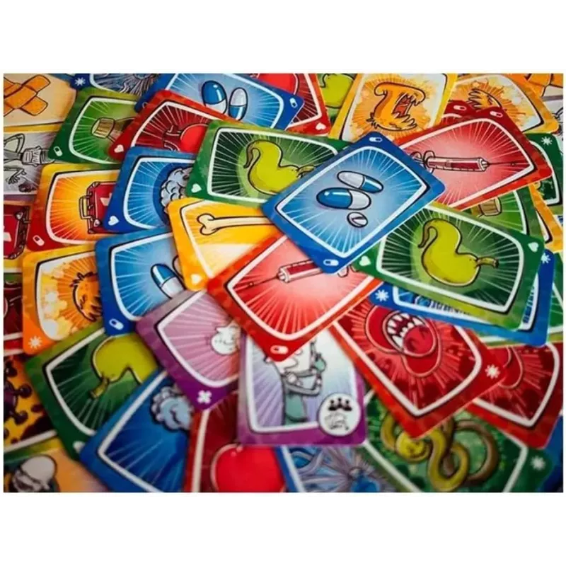 - Contenido del juego: Incluye cartas de virus, medicinas, órganos y tratamientos especiales, cada una con ilustraciones vibrantes y detalladas.