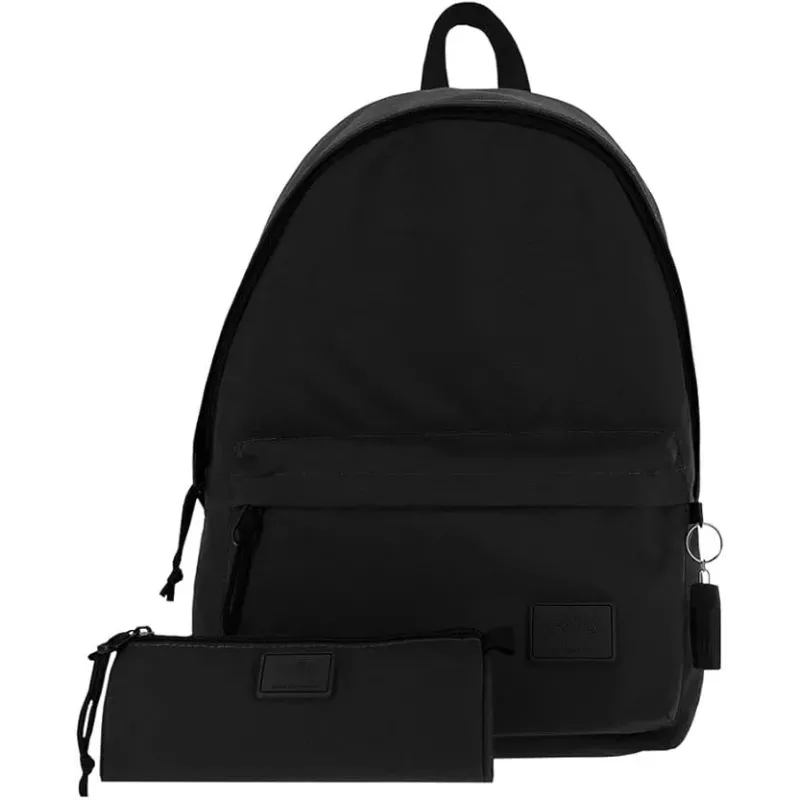 Pack Mochila + Estuche Totto Kalex Negro - Conjunto Escolar