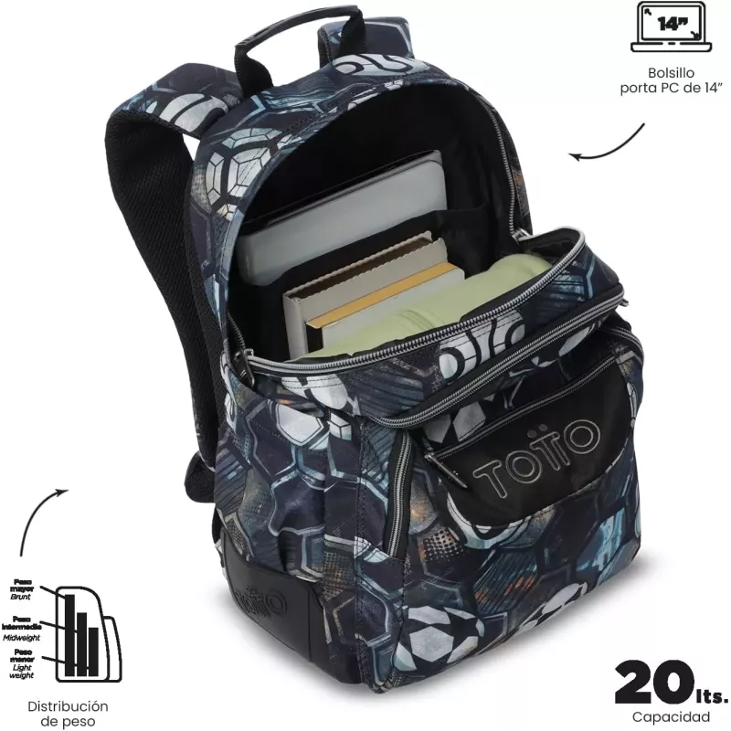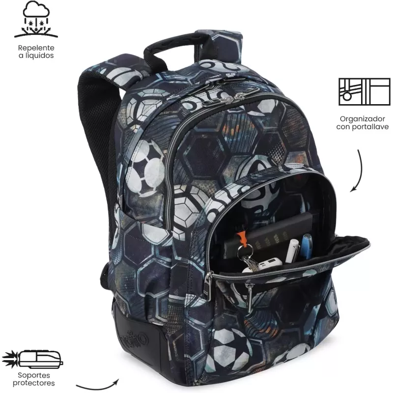 Mochila Escolar Totto Rayol Verat Soccer - Doble Compartimento Refuerzos Engomados