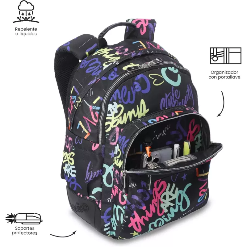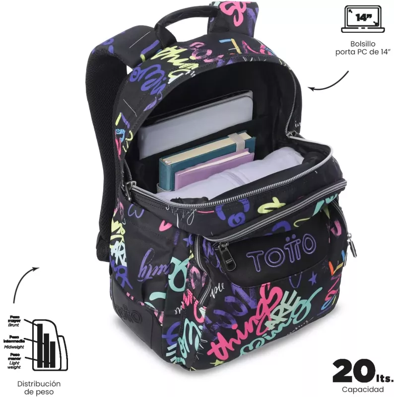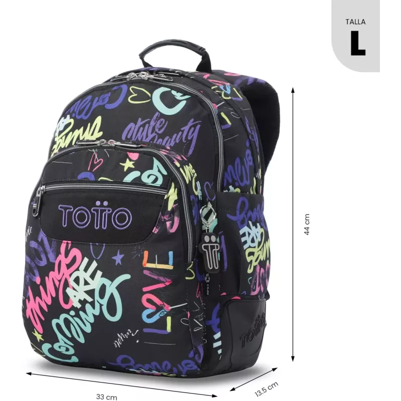 Mochila Escolar Totto Rayol Letry - Doble Compartimento Refuerzos Engomados