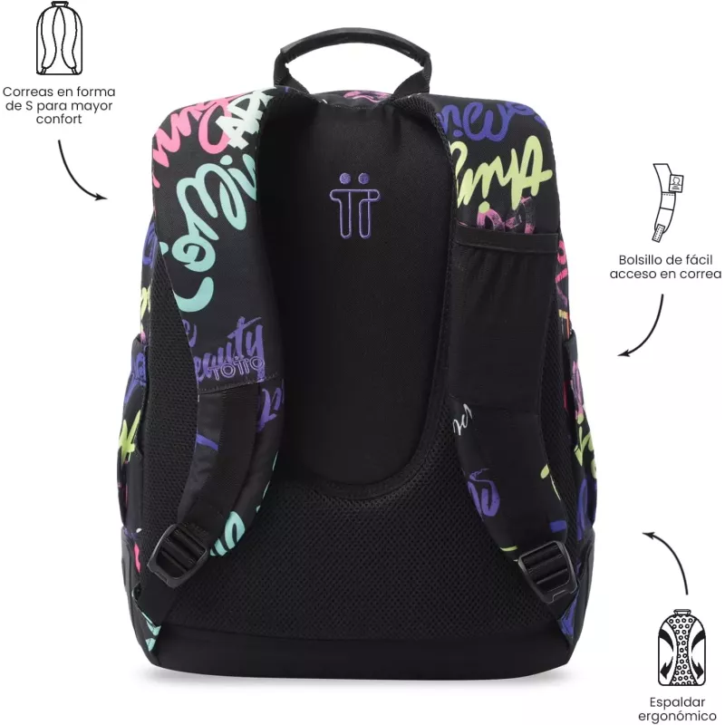 Con la Mochila Escolar Totto Rayol Letry, estarás listo para enfrentar cualquier desafío escolar con estilo y comodidad. No esperes más para experimentar la combinación perfecta de diseño y funcionalidad. ¡Hazte con la tuya y marca la diferencia en tu día a día!